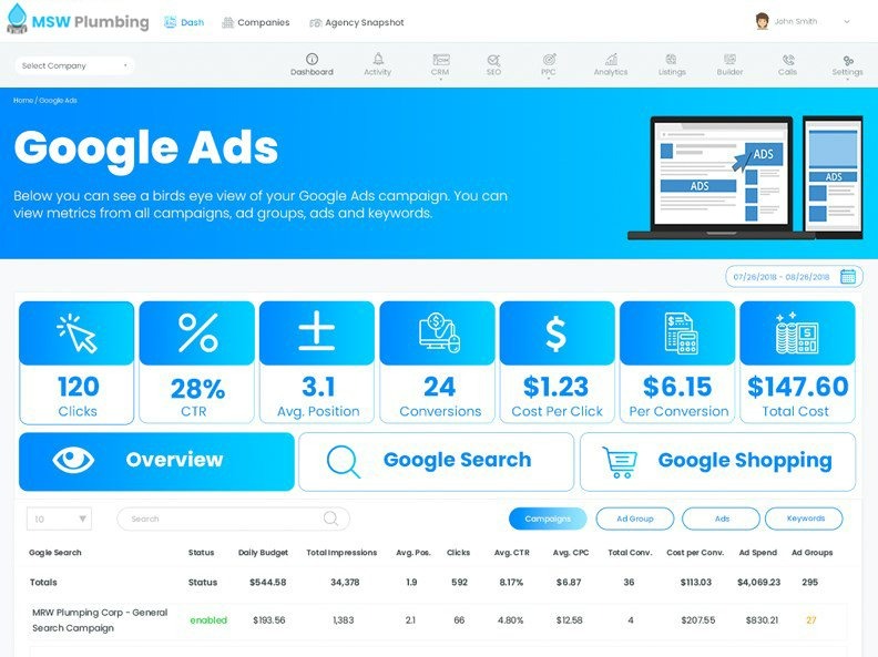 With our integrated client dashboard you can see your results in real time, anytime!